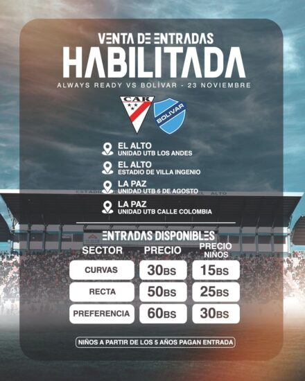 PRÓXIMO PARTIDO ALWAYS READY AURORA Jueves 4 de Diciembre 15:00 Hrs Estadio de Villa Ingenio