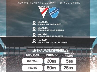 Always Ready vs Bolivar 22 Nov 2025admin_always TODOS A VILLA INGENIO ALWAYS READY BOLIVAR 23 de Noviembre 15:00 Estadio de Villa Ingenio #LaHistoriaLaEscribimosJuntos0