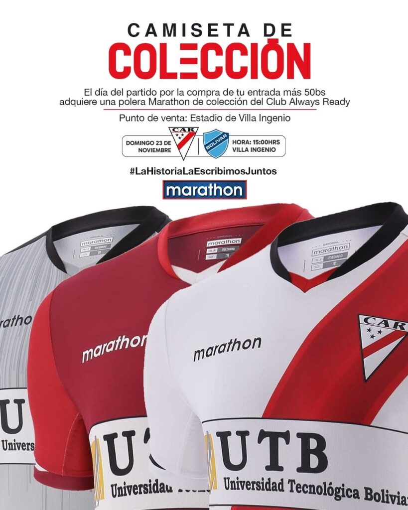 POLERA MARATHON DE COLECCIÓN El dia del partido por la compra de tu entrada +50 Bs. Adquiere una polera Marathon de colección del Club.ALWAYS READY... Read More